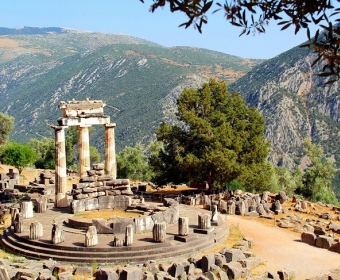 around noon. Famous for its theater, Temple of Apollo and ancient ruins, Delphi
