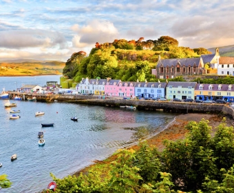 We'll then continue our journey to the Isle of Skye, crossing over Skye Bridge and through the town of Portree, the capital of the island. We'll take a break here, and you'll have an hour of free time to buy lunch in one of the traditional restaurants while watching the hustle and bustle of the port.
